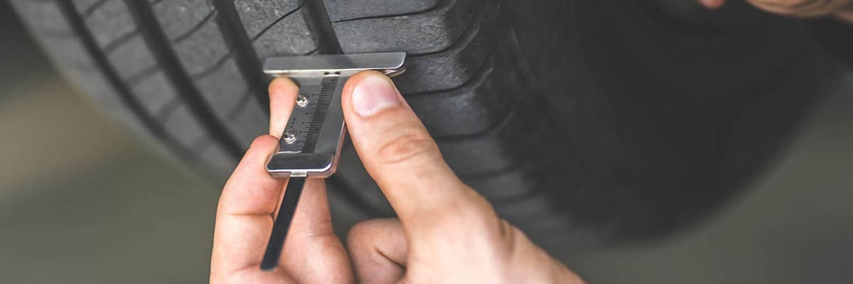 Bieżnik mierzymy w kilku punktach, zawsze między różnymi blokami oraz lamelami. Zweryfikujemy w ten sposób, czy zużycie opon jest równomierne. Jeżeli jest inaczej i w różnych punktach głębokość bieżnika jest inna, wskazuje to na nieprawidłowe ciśnienie w oponach lub źle ustawioną geometrię zawieszenia.
